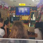 - 1 x 40-50“Zoll Flat-TV/Screen (in Polstertasche sicher gelagert bei Ausgabe/Transport) – alternativ Beamer – zur Liveübertragung nach außen aus dem Mobil oder zum Ablesen der Texte der Lieder für das Publikum / die Gäste außerhalb des Mobils